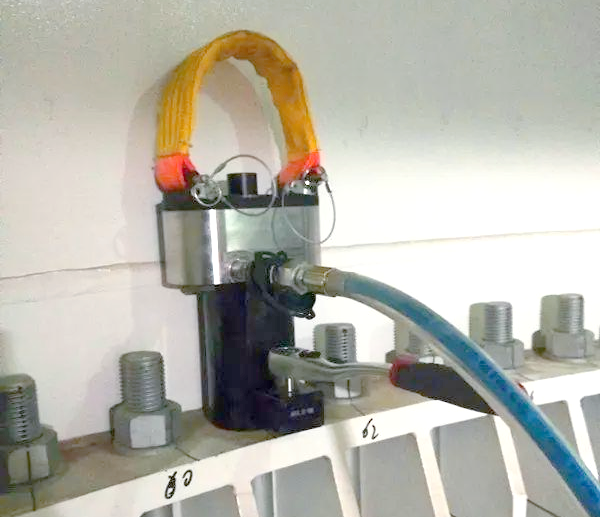 液壓拉伸器通過泵站壓力表實(shí)現(xiàn)精確的定值緊固,同步分流閥的設(shè)計(jì)使得一個泵站能同時驅(qū)動多個液壓拉伸器對多個螺栓進(jìn)行同步拉伸,從而確保所有螺栓同時達(dá)到預(yù)定的載荷值。